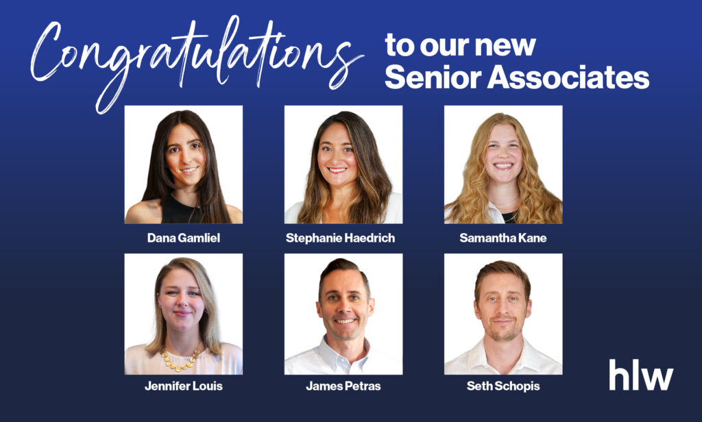 Congratulations to our new Senior Associates: James Petras, Jennifer Louis, Samantha Kane, Dana Gamliel, Seth Schopis, and Stephanie Haedrich.