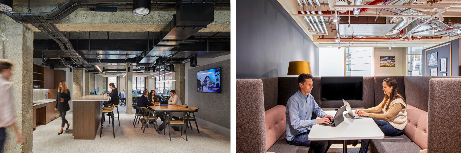 Playing with your design aesthetic to reflect a more casual and relaxed version of the rest of your office can signal to employees that a slightly different set of social norms is acceptable here. A range of softer seating areas, with books or magazines, adds comfort and agency.